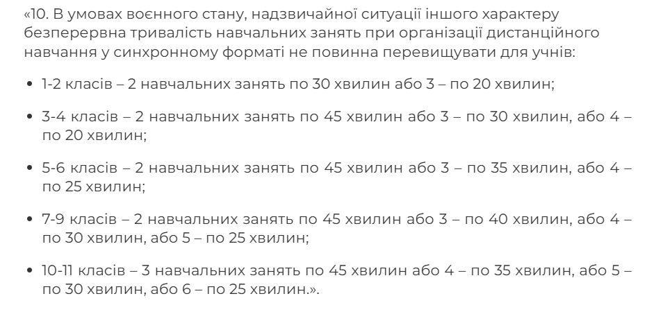 Тривалість навчального заняття під час дистанційного формату